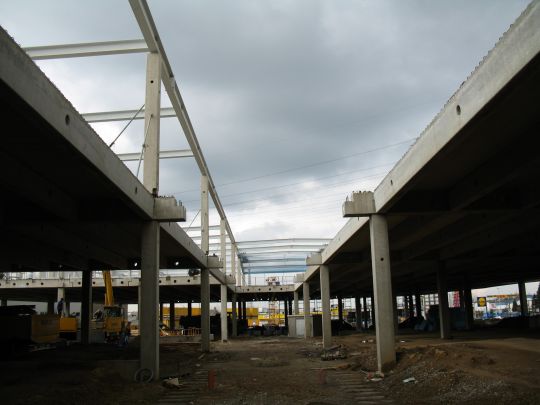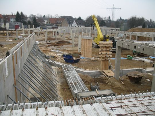 In der Planung mussten die Fertigteilgewichte gering gehalten werden; das zweigeschossige Gebäude wurde aus einer Mischung von Fertigteilen und Ortbeton erstellt.