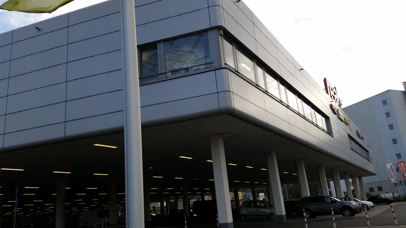 Gebäudefläche und Grundstücksfläche sind identisch. Hinzu quert eine Hochspannungsleitung in niedriger Höhe das Gebäude. Diese Zwänge führten zum Einsatz eines Hydraulik-Raupenkranes.