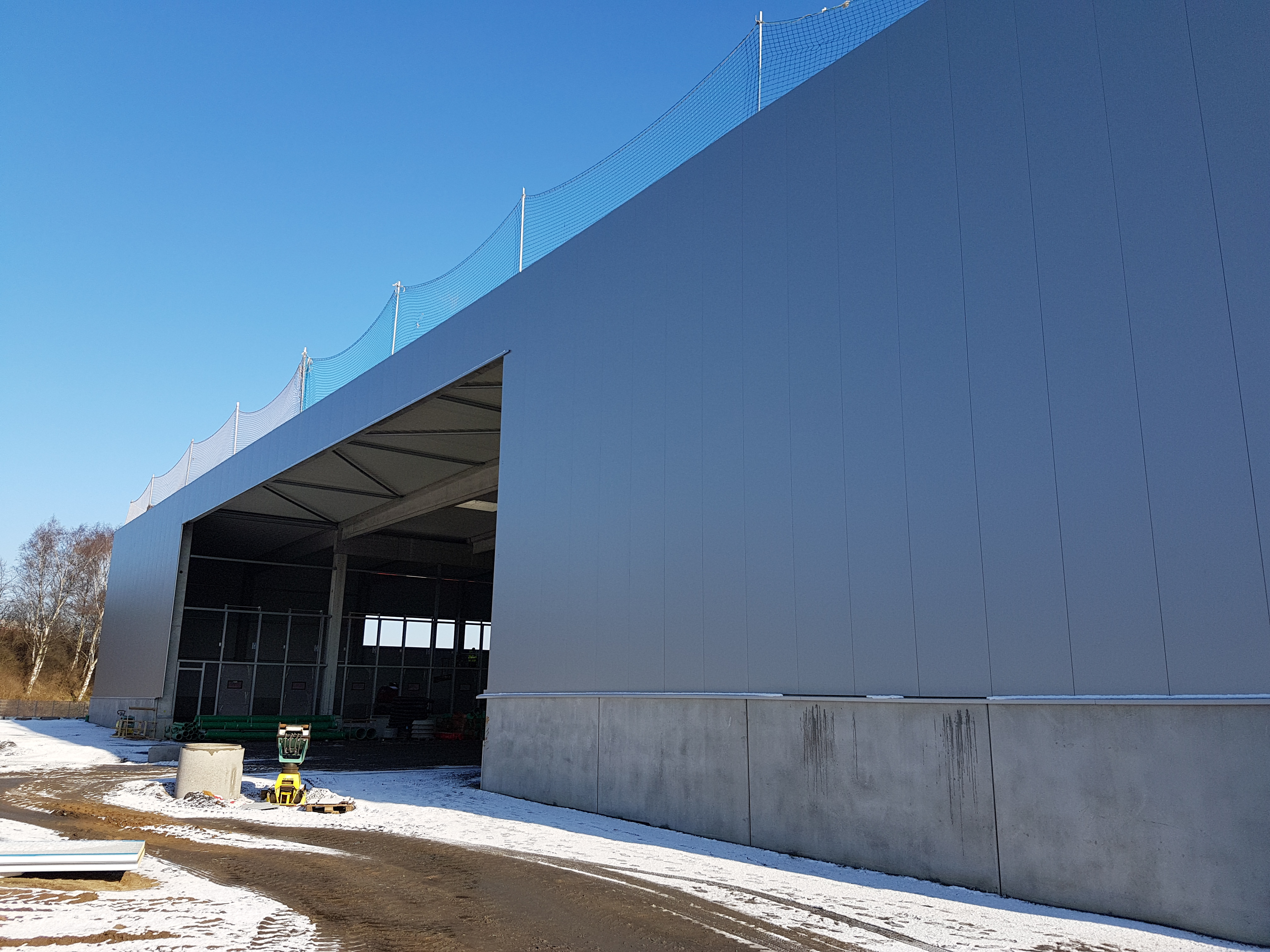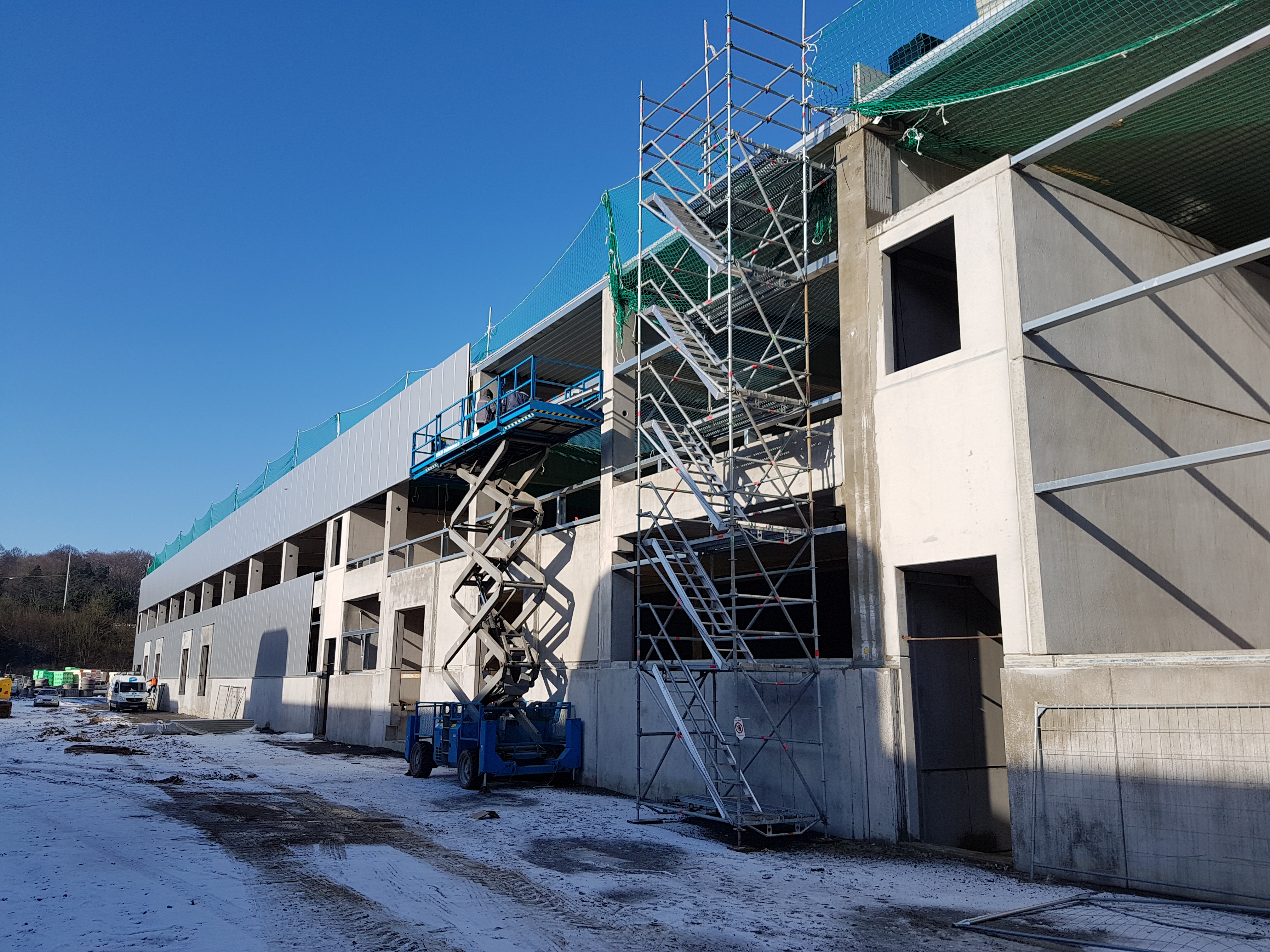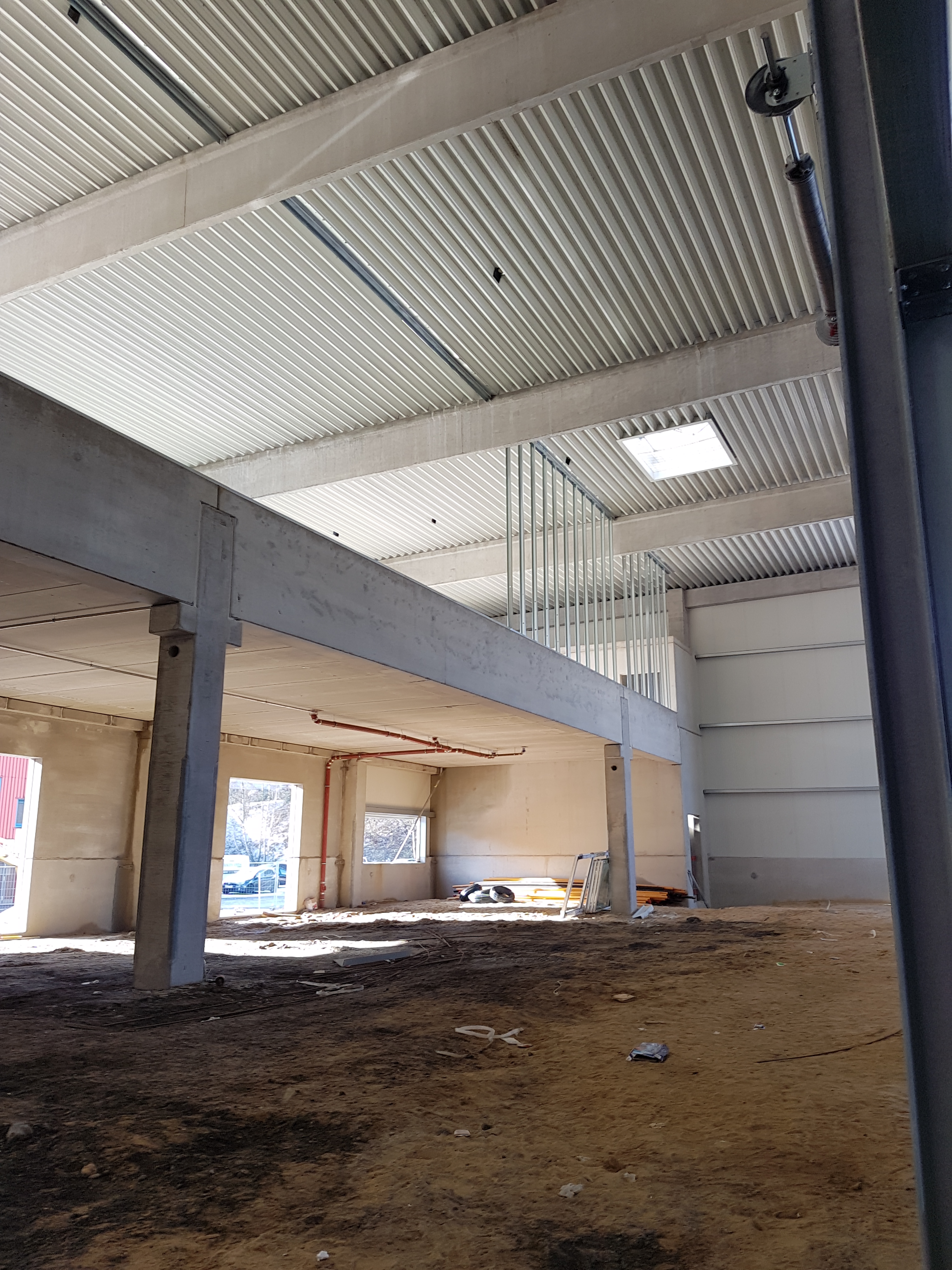 Die Lagerhalle hat eine Grundfläche von ca. 10.000 m² und unterteilt sich in drei durch Brandwände getrennte Gewerbebereiche mit integrierten Mezzaninen.