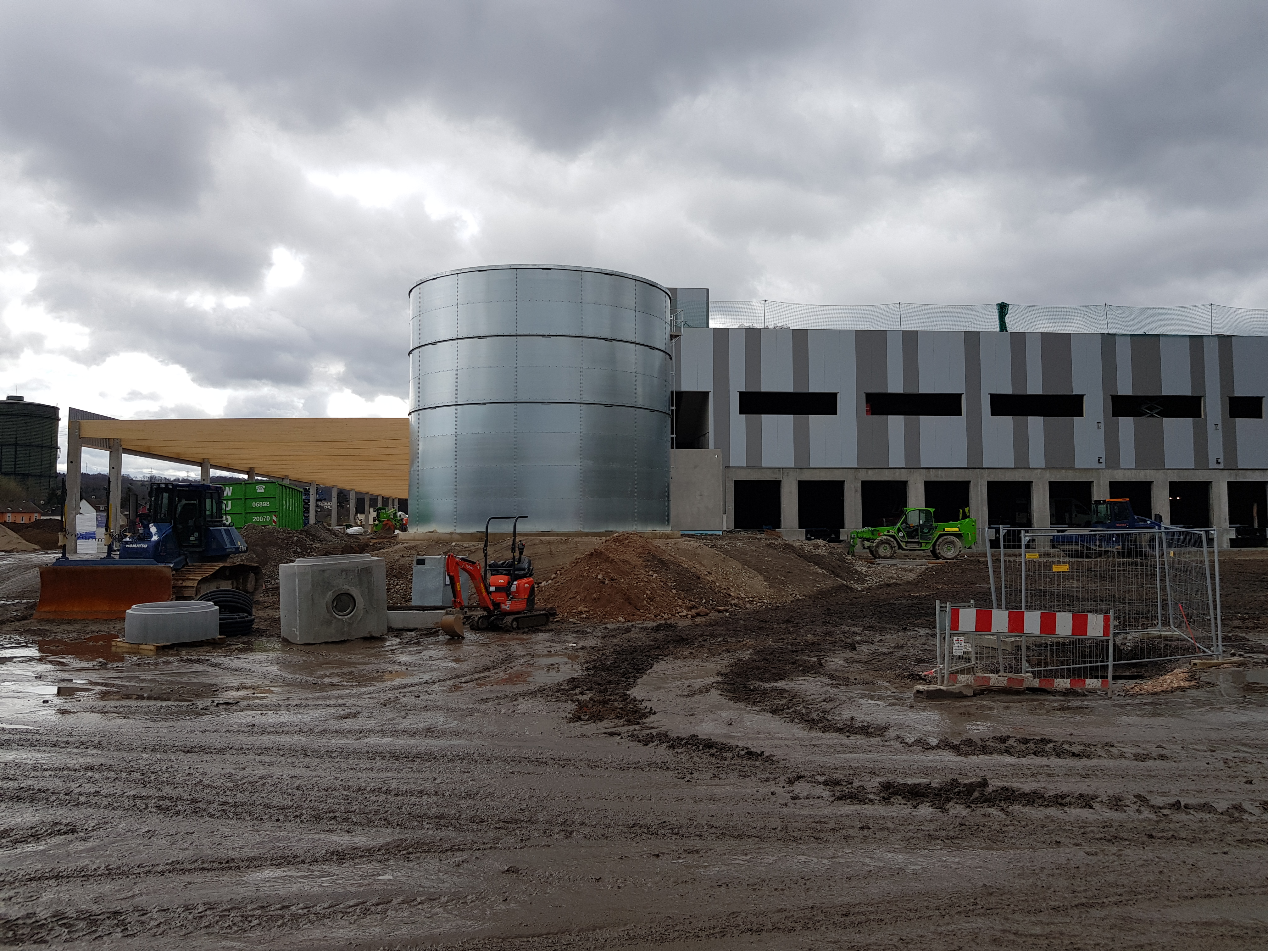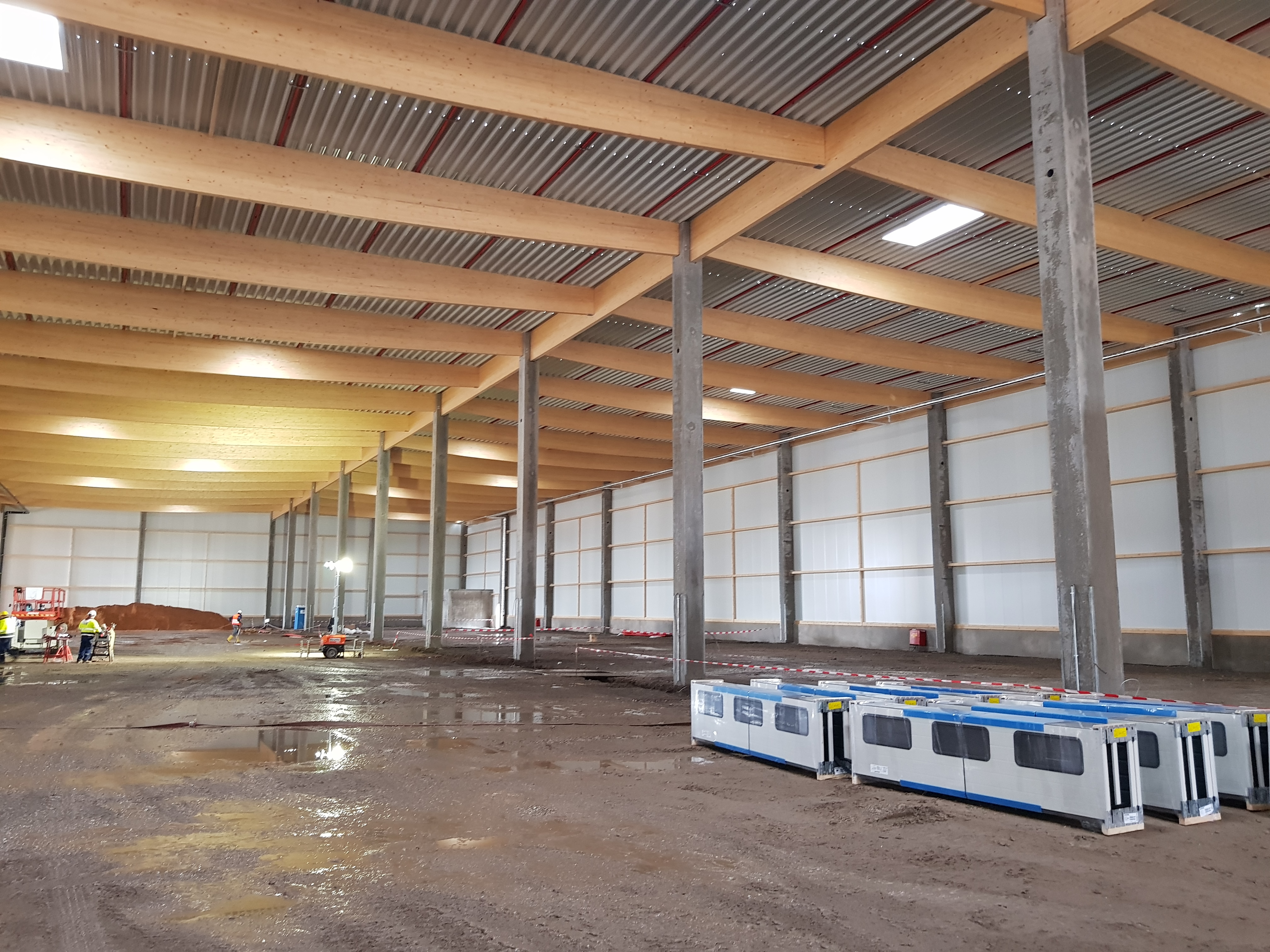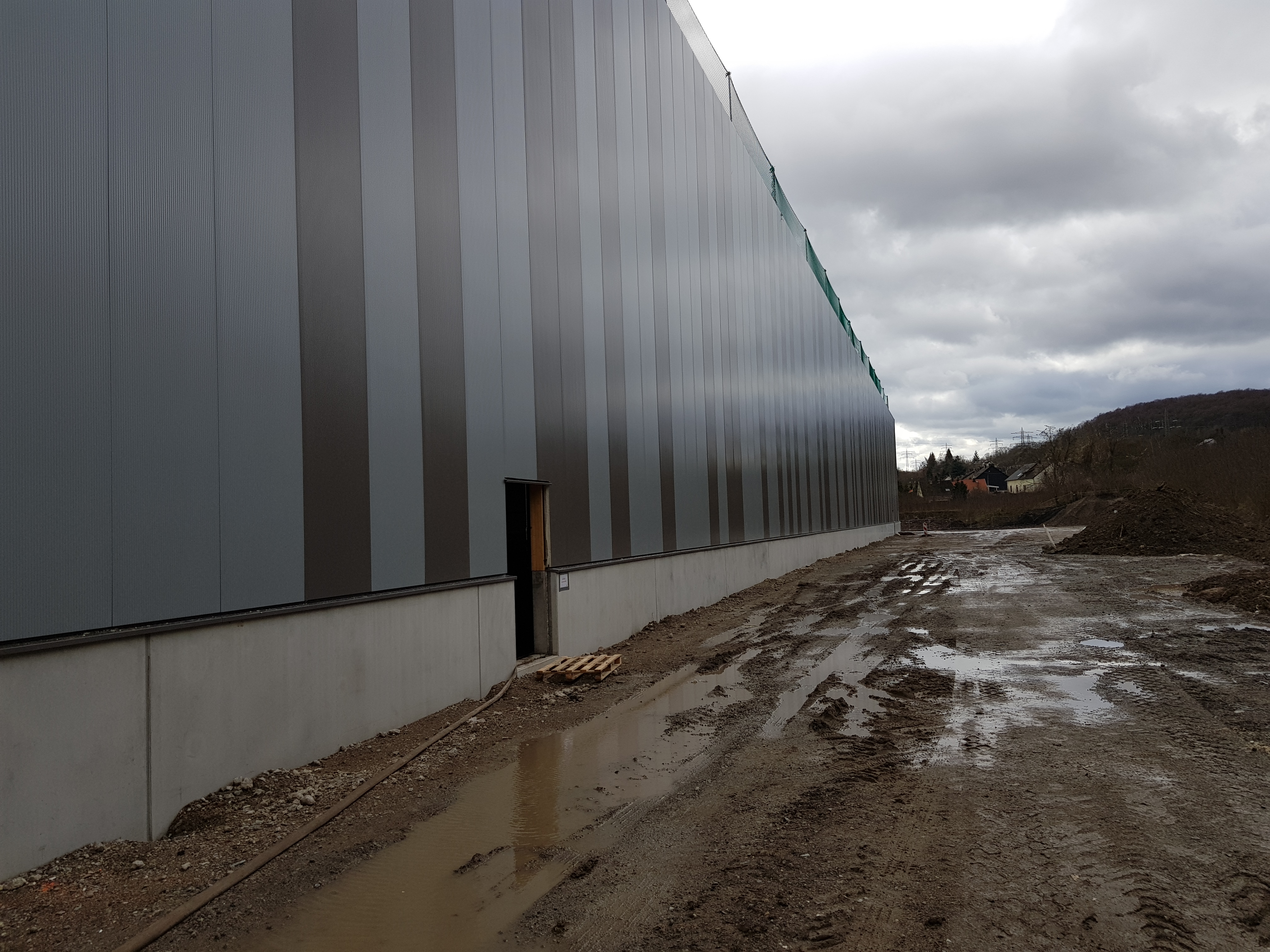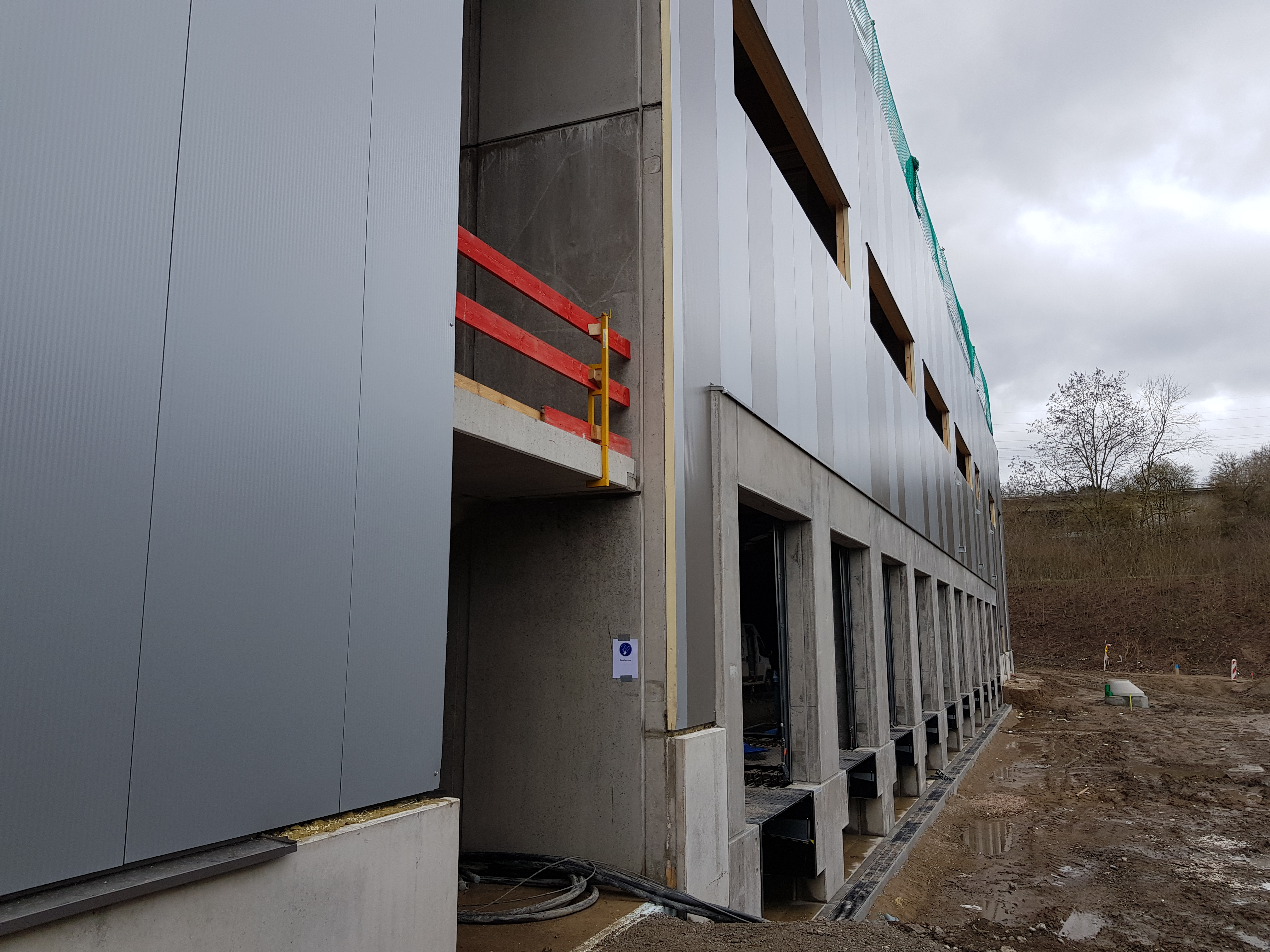 Charakteristisch für dieses Projekt ist das über 15 m gespannte Vordach auf einer Längsseite, an der die Pakete für Amazon umgeschlagen werden.
