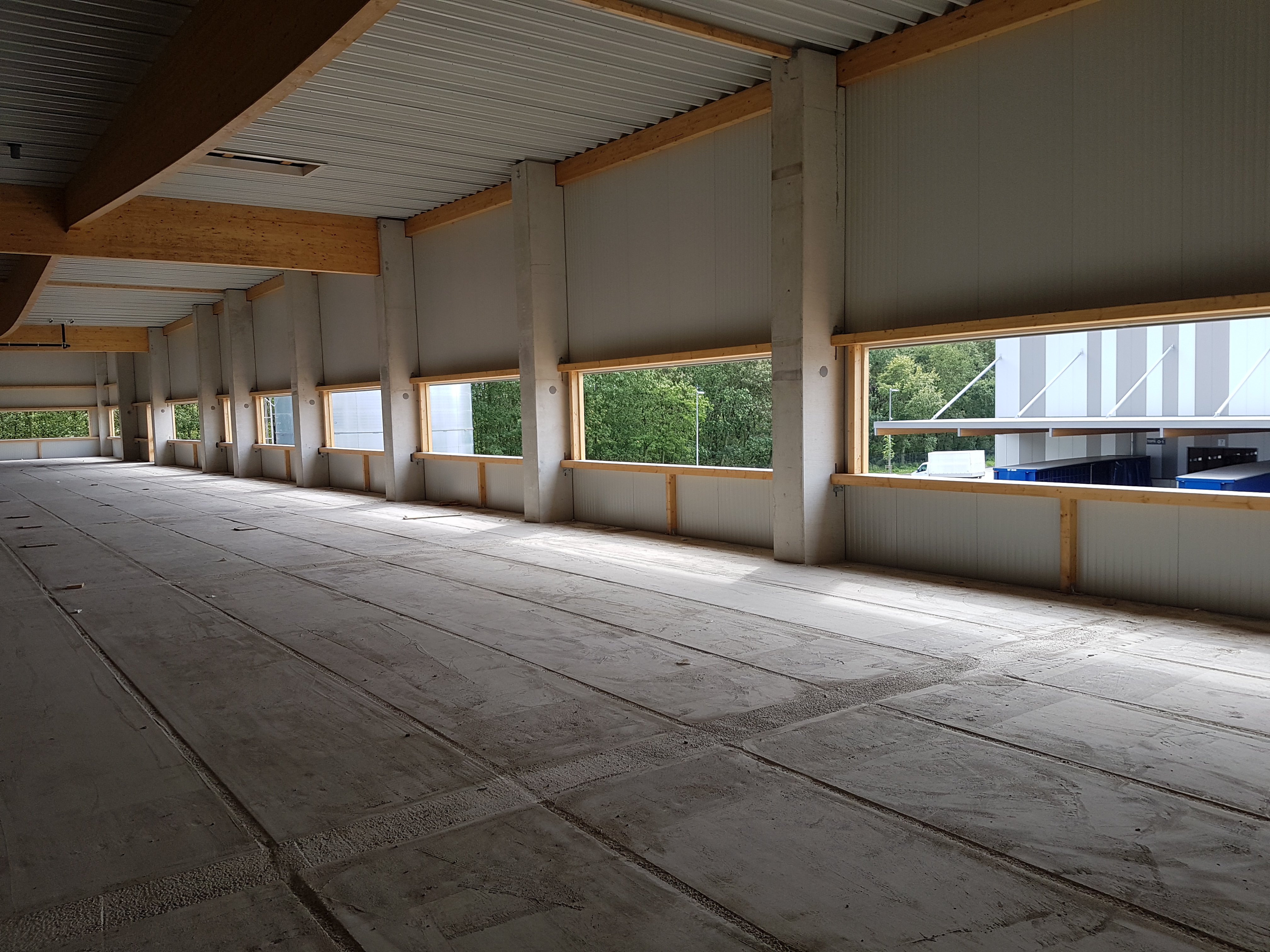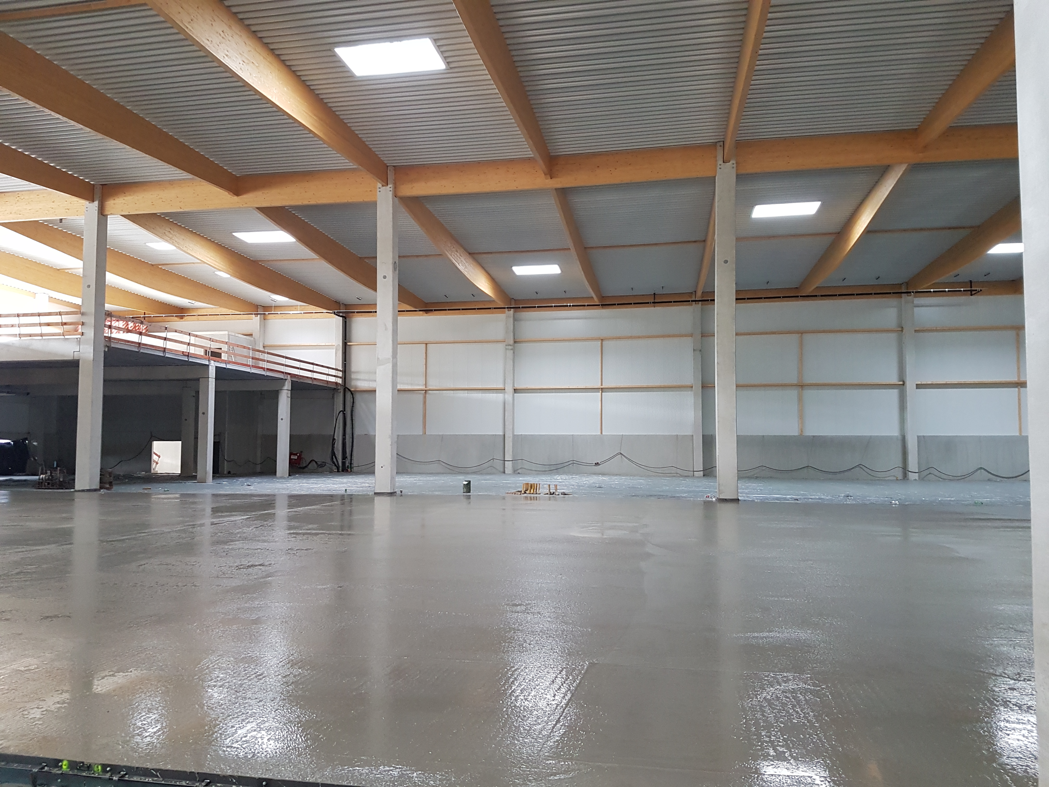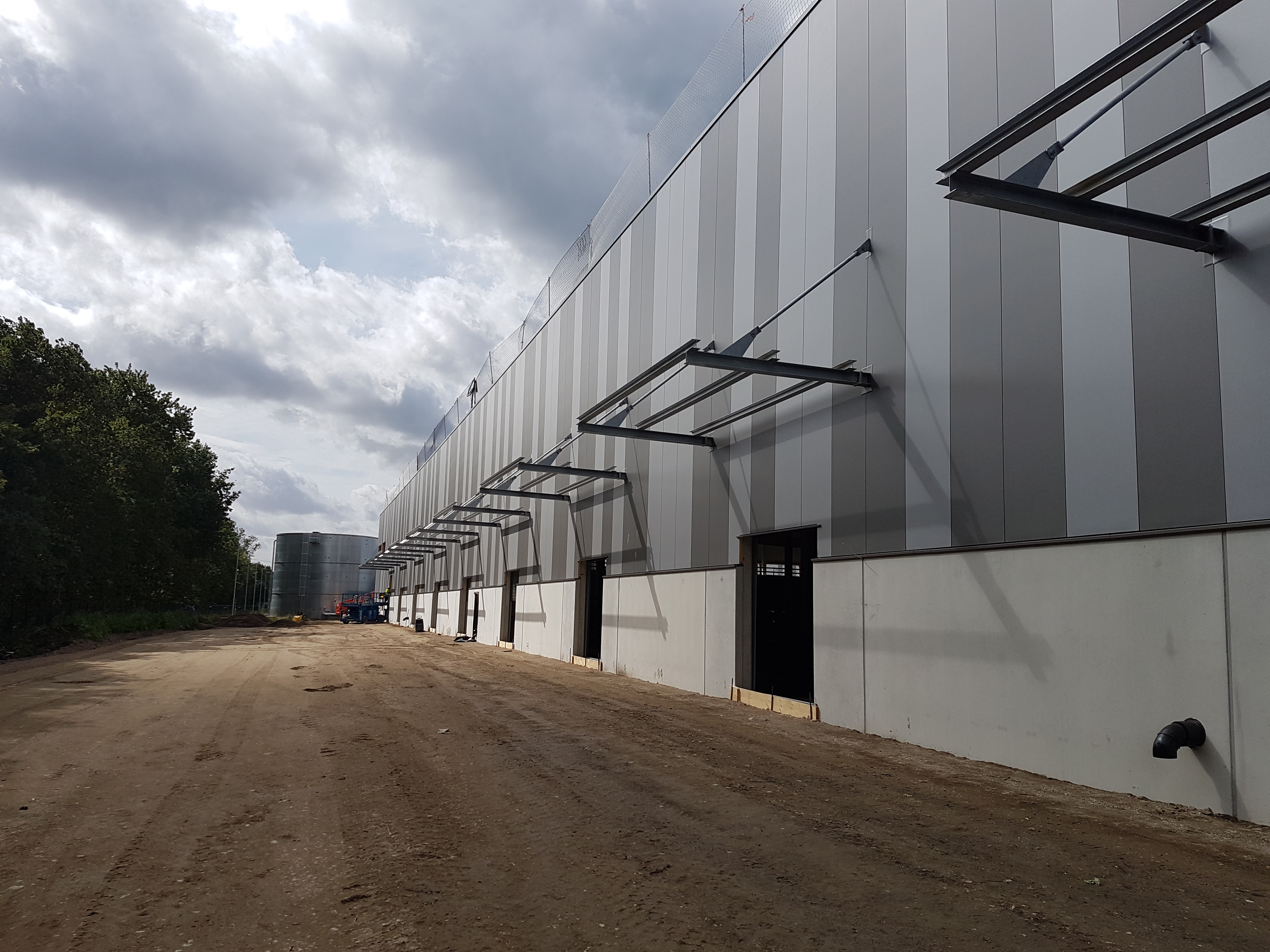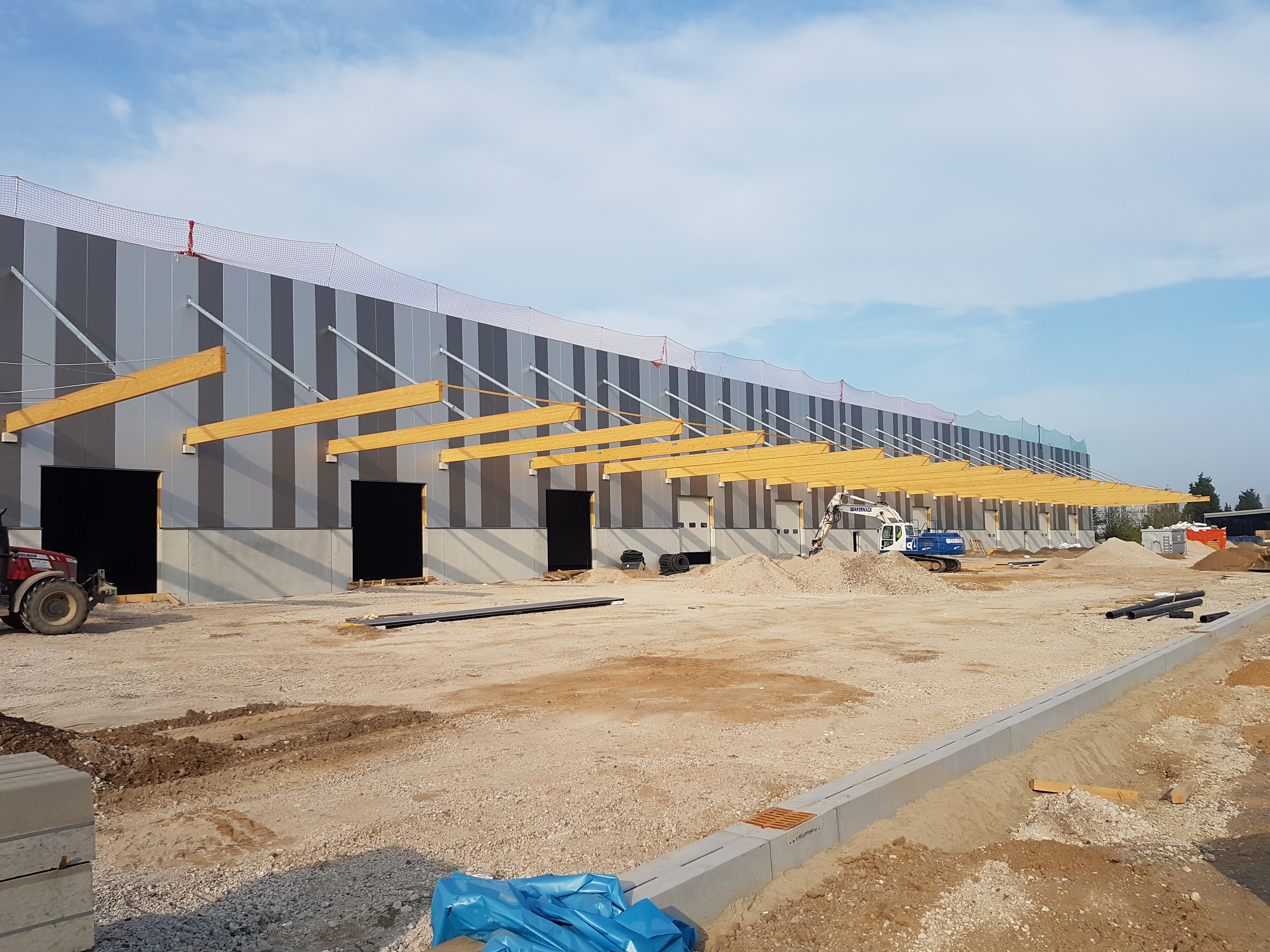 Der gut 13.000 m² große Neubau besteht aus 3 Hallen, die durch Brandwände voneinander getrennt sind. .
