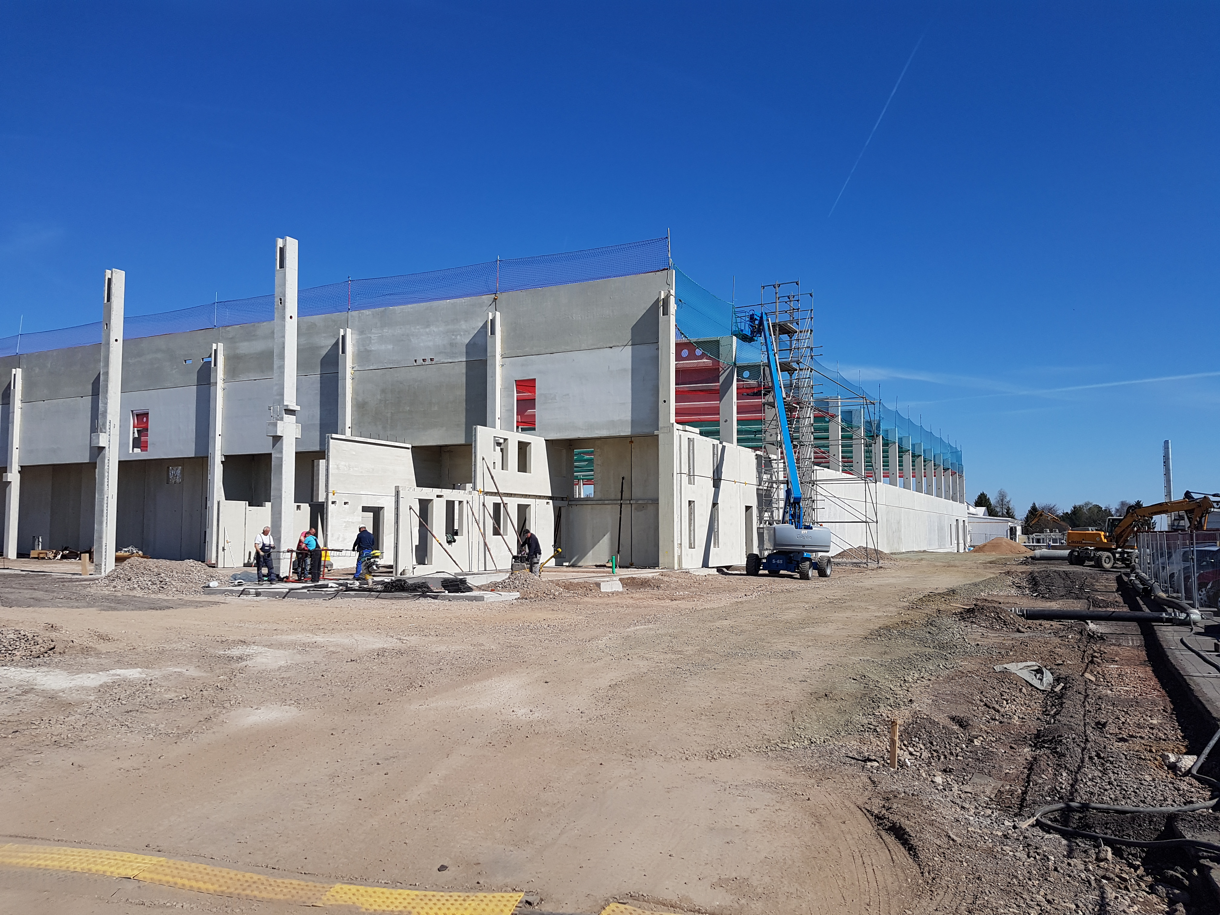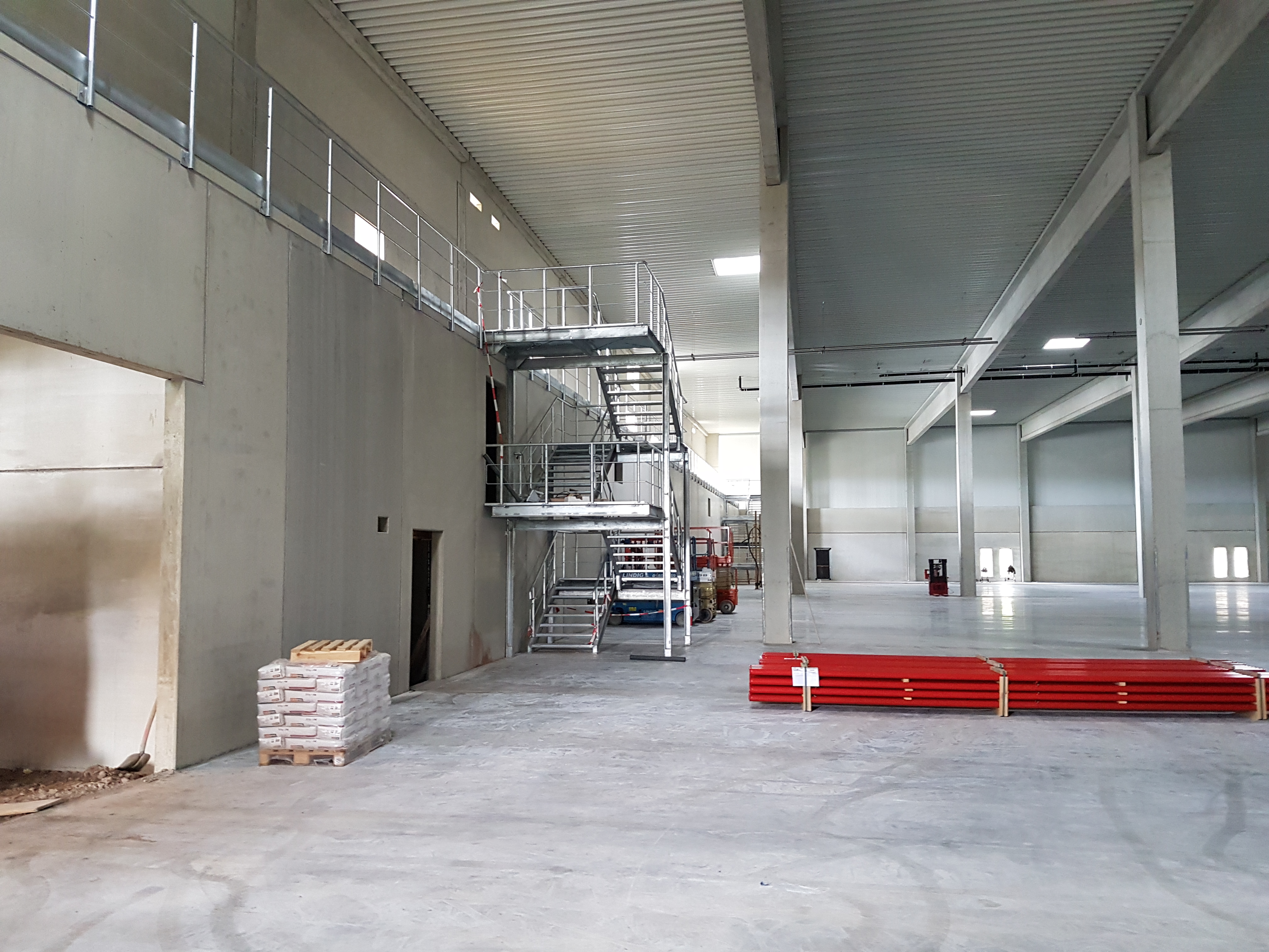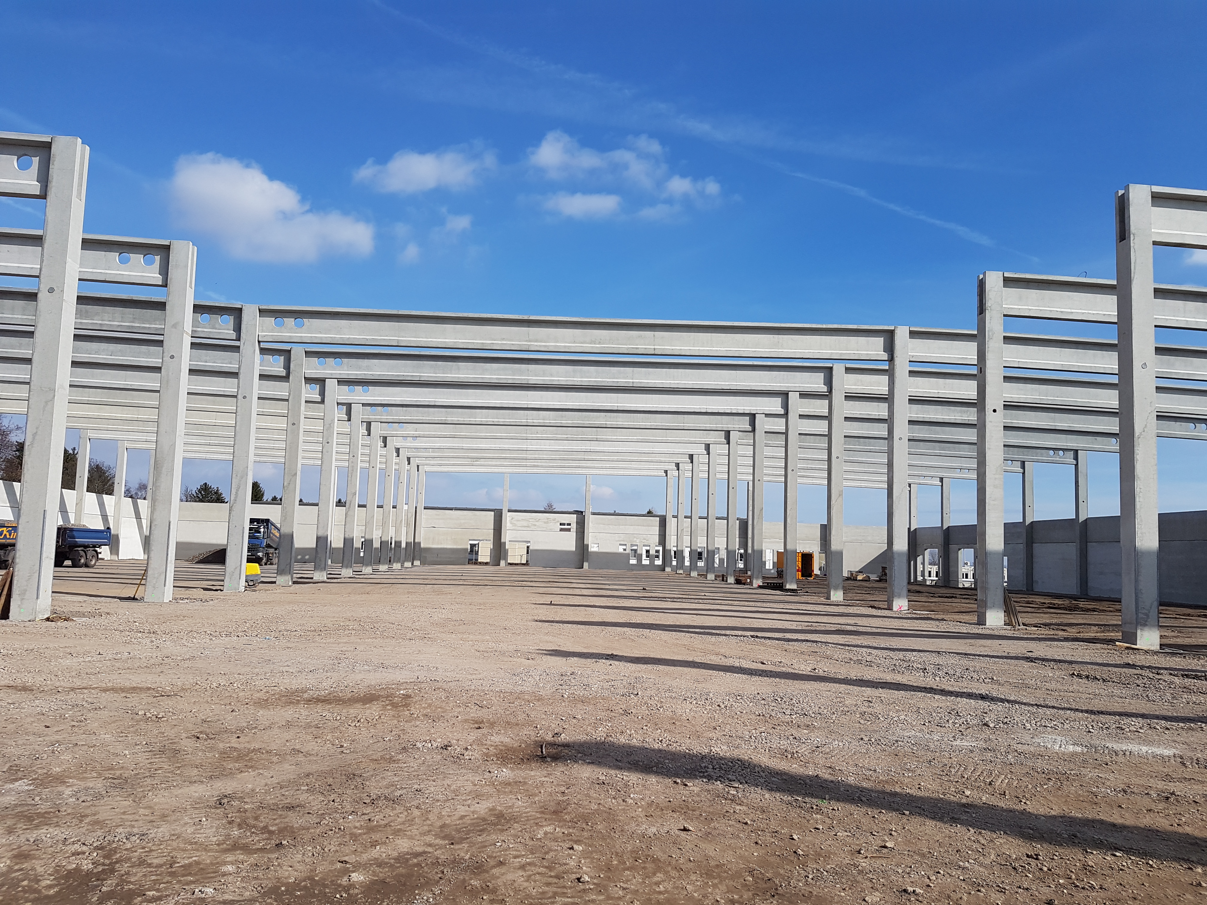 Es handelt sich um eine 105 m x 78 m große Lagerhalle, die inklusive Dachkonstruktion komplett aus Fertigteilen besteht. Der 26 m x 78 m große Kopfbau ist zweigeschossig und es sind unter anderem Büro- und Sozialräume untergebracht.