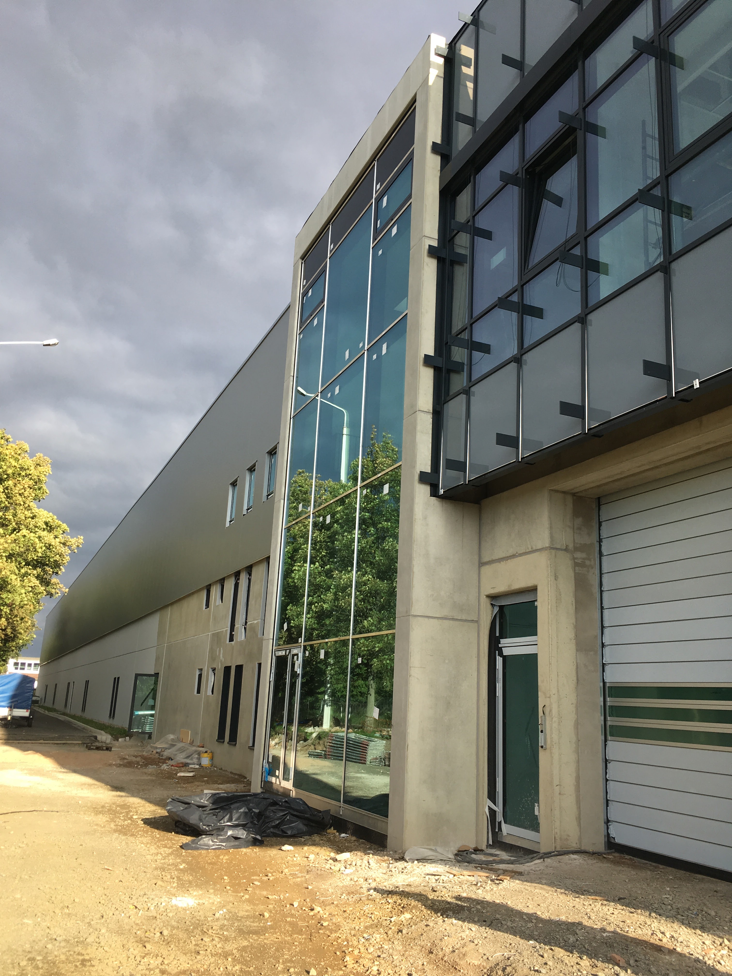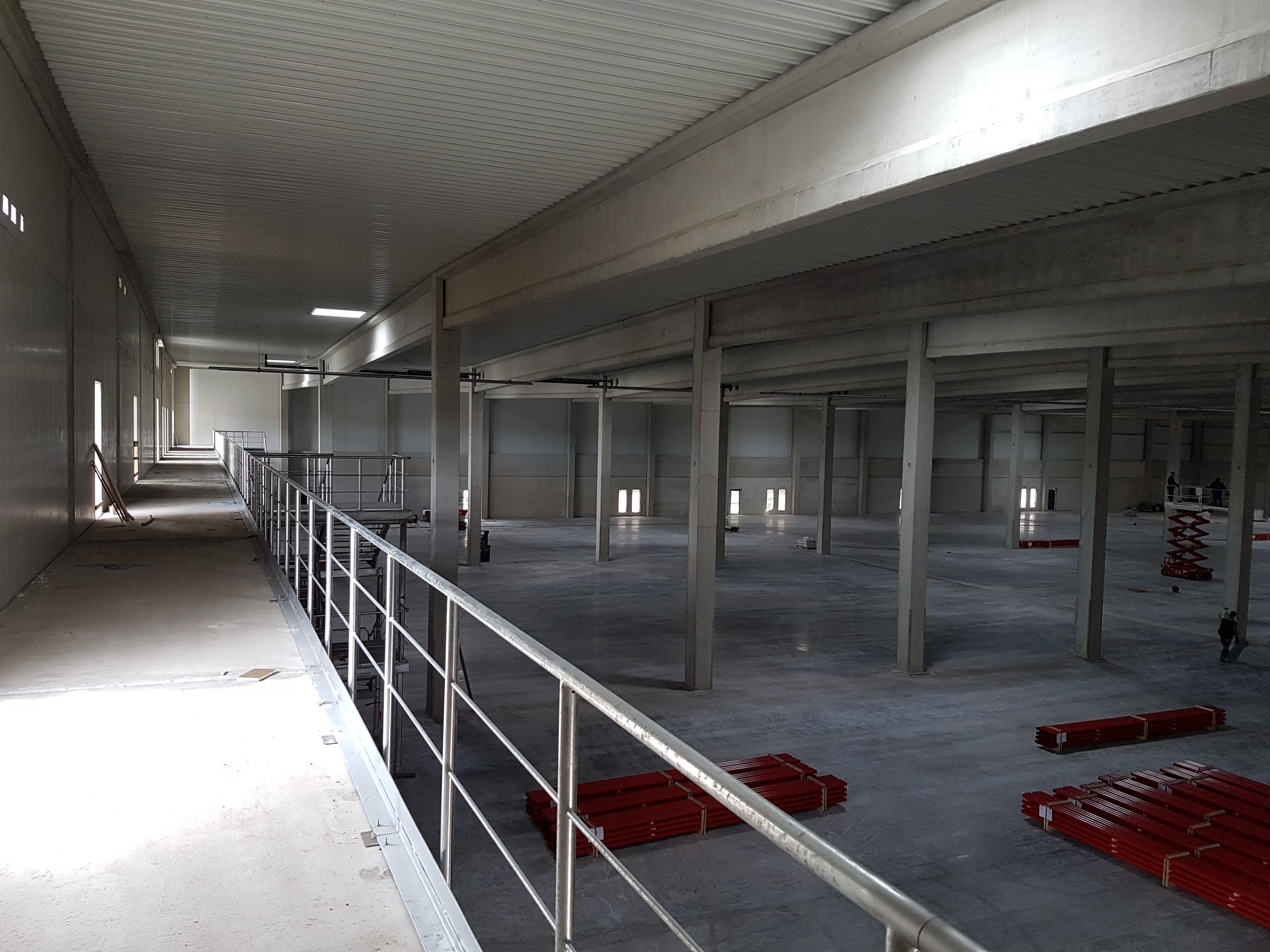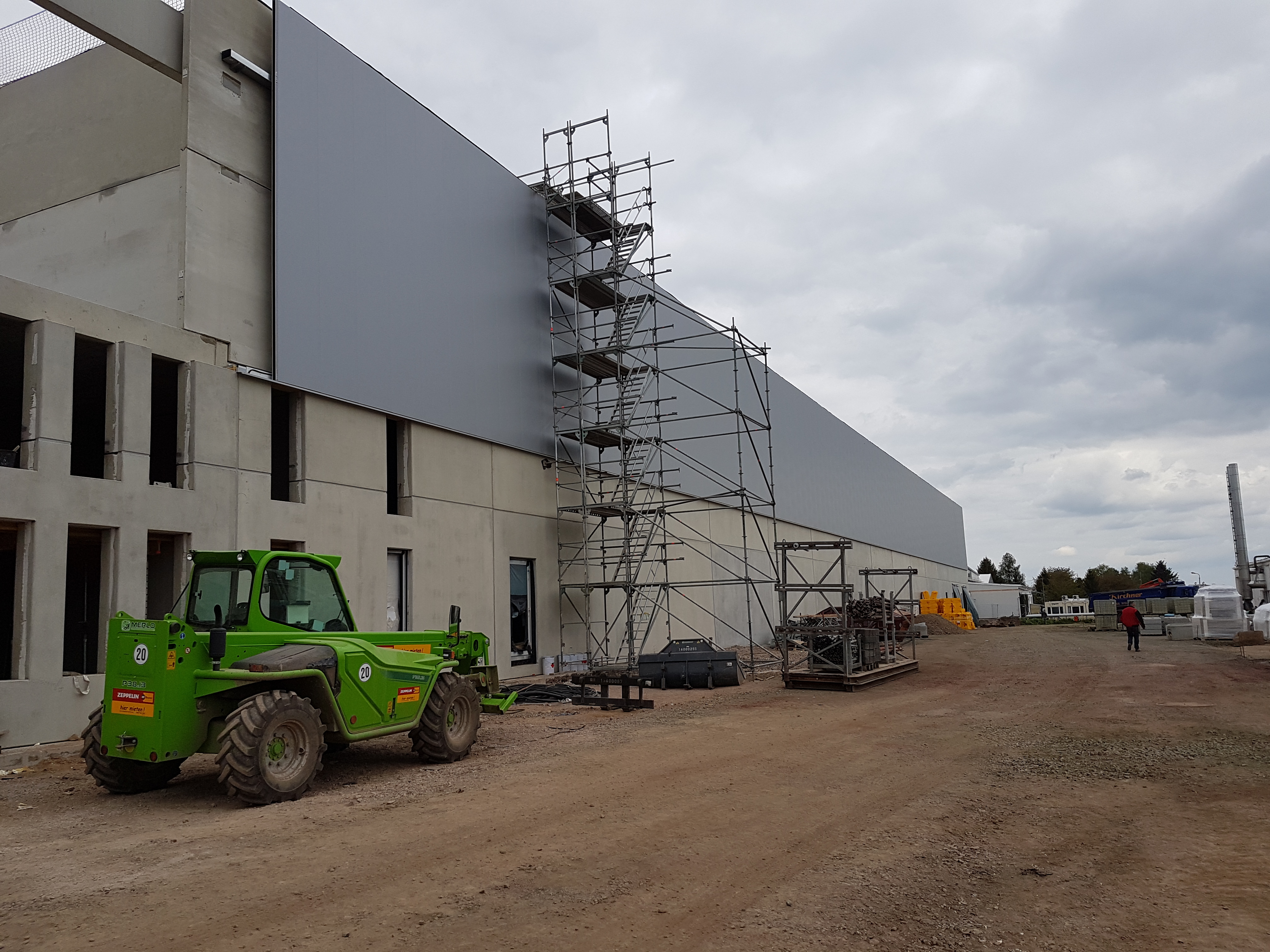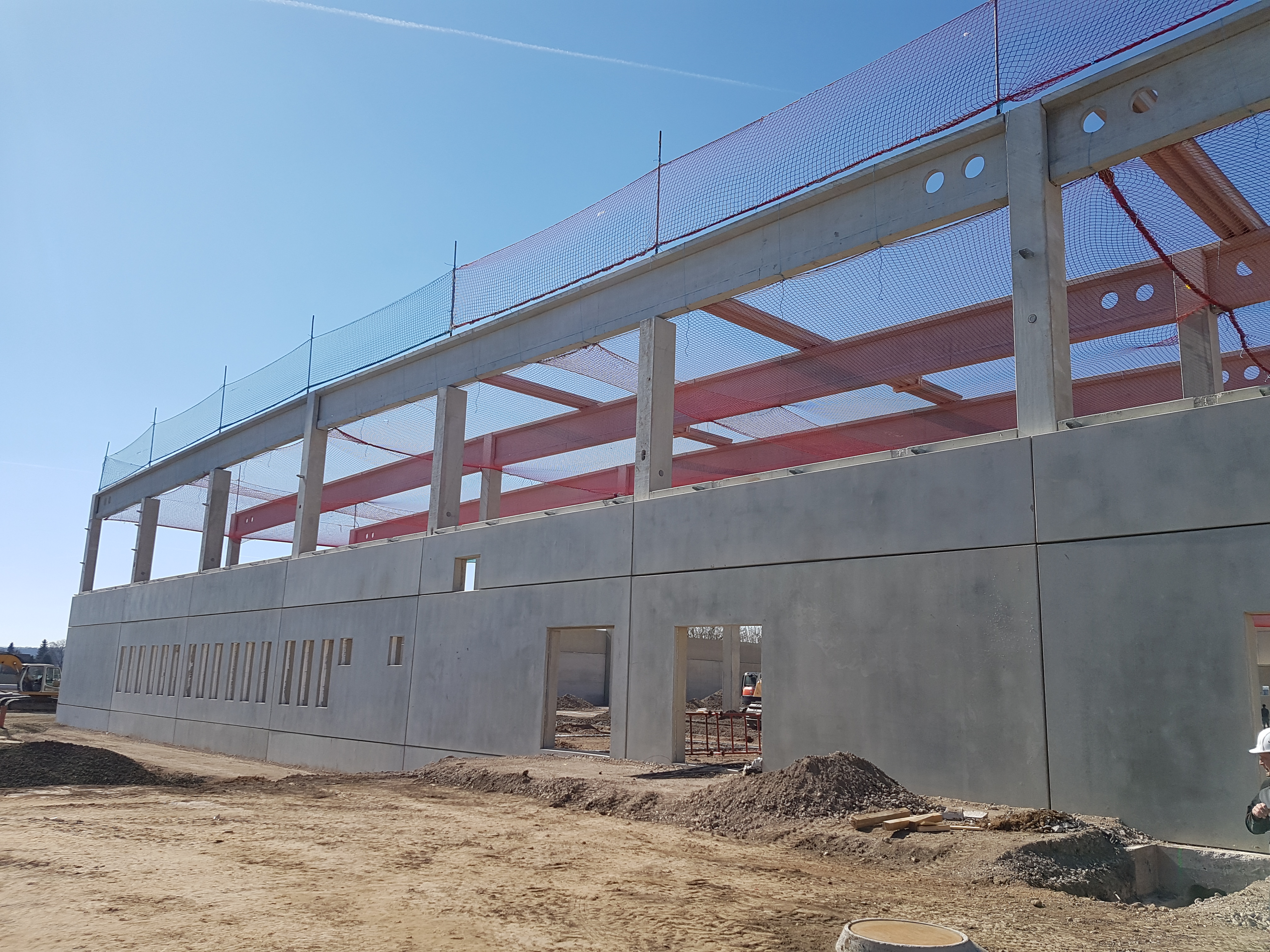 Es handelt sich um eine 105 m x 78 m große Lagerhalle, die inklusive Dachkonstruktion komplett aus Fertigteilen besteht. Der 26 m x 78 m große Kopfbau ist zweigeschossig und es sind unter anderem Büro- und Sozialräume untergebracht.